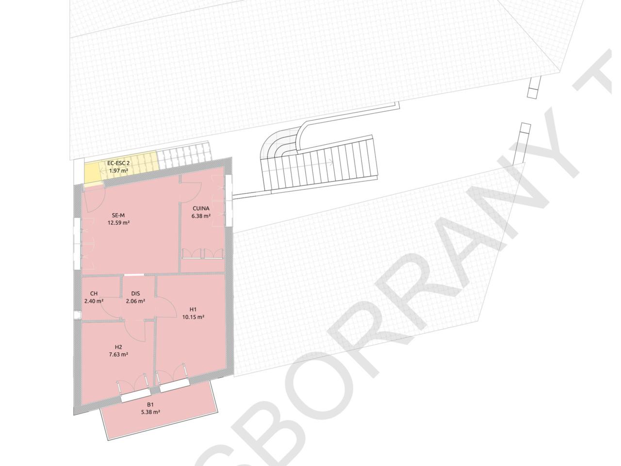 DescripcióAltura pis 1r, pis superfície construïda 54 m², sup. útil 44 m², núm. hab. individ.: 2, 1 bany/s, antiguitat més de 50 anys, estat conservació: a reformar, orientació nord-est.
